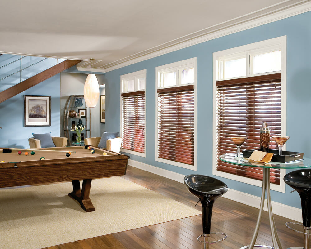 Faux Wood blinds have the rich, natural look of real wood, but are fabricated from materials that offer advantages that wood cannot. Faux wood blinds are ideal for applications such as kitchens and bathrooms and are an economical alternative to wood.